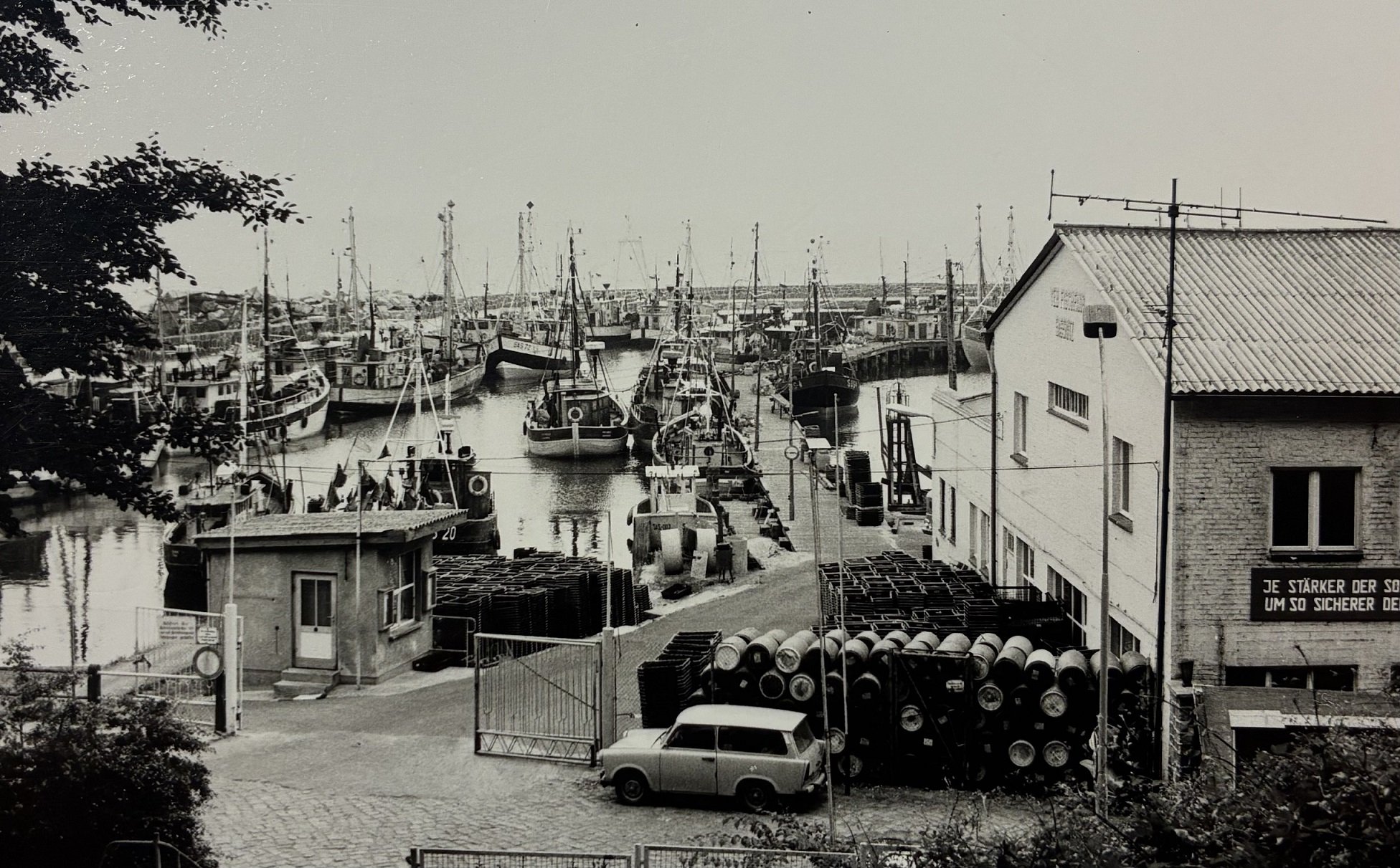 Jahrzehntelang waren die 17 m Kutter dann in allen Häfen Mecklenburg-Vorpommerns präsent. Hier sieht man den Hafen Sassnitz mit mehreren 17 m Kuttern, darunter SAS 101 / SAS 72 / ANTON SAEFKOW.