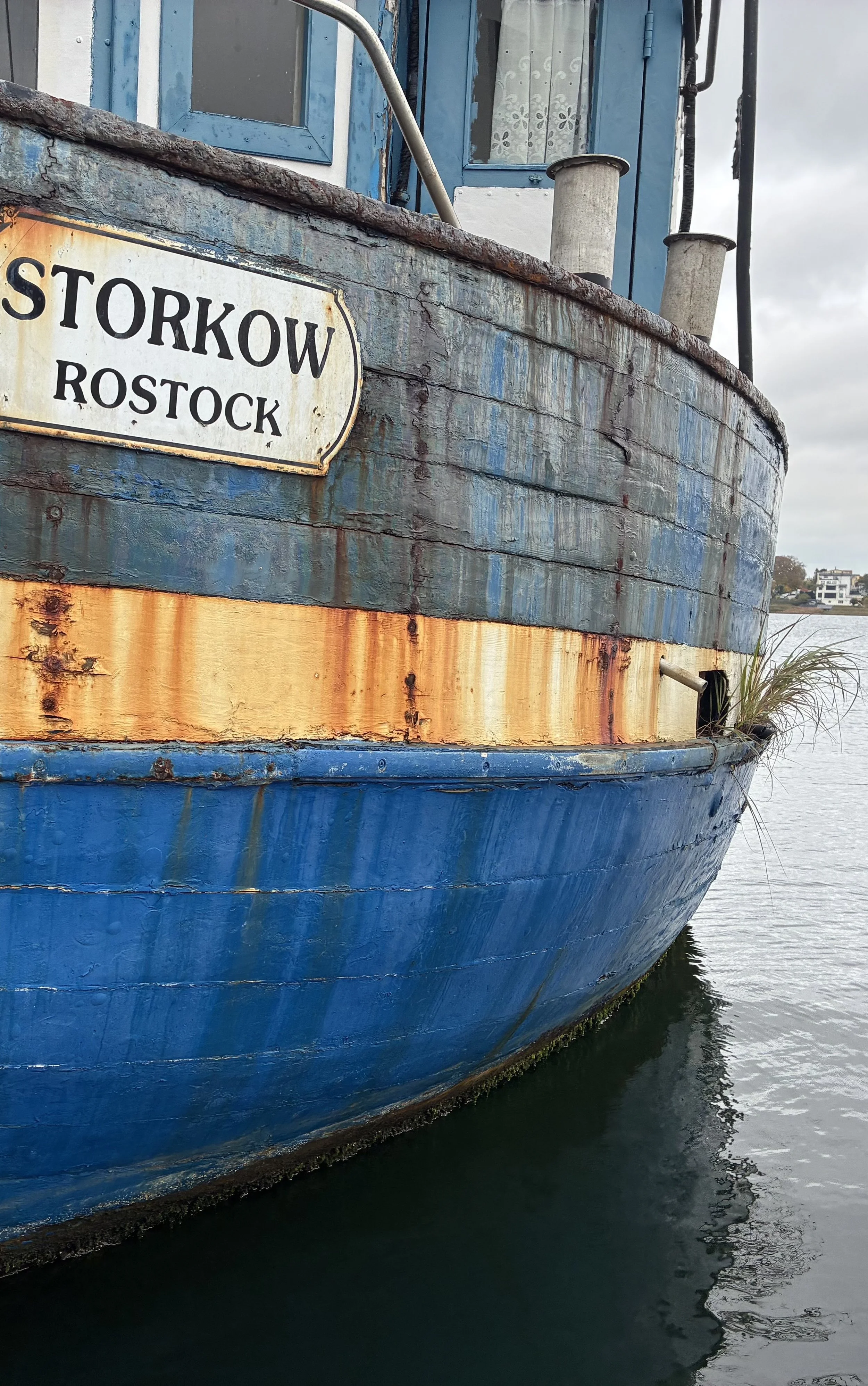 Um 2018 lief dann die Klasse der Storkow ab, das ist so etwas wie die Hauptuntersuchung für Schiffe. Die Storkow wurde aufgelegt (vorübergehend stillgelegt). 2022 wurde sie dann an Jens Pörksen verkauft, der Liegeplatz war nun im Stadthafen Rostock. Dort wurde die Storkow sich selbst überlassen und befand sich in einer Periode des Verfalls.